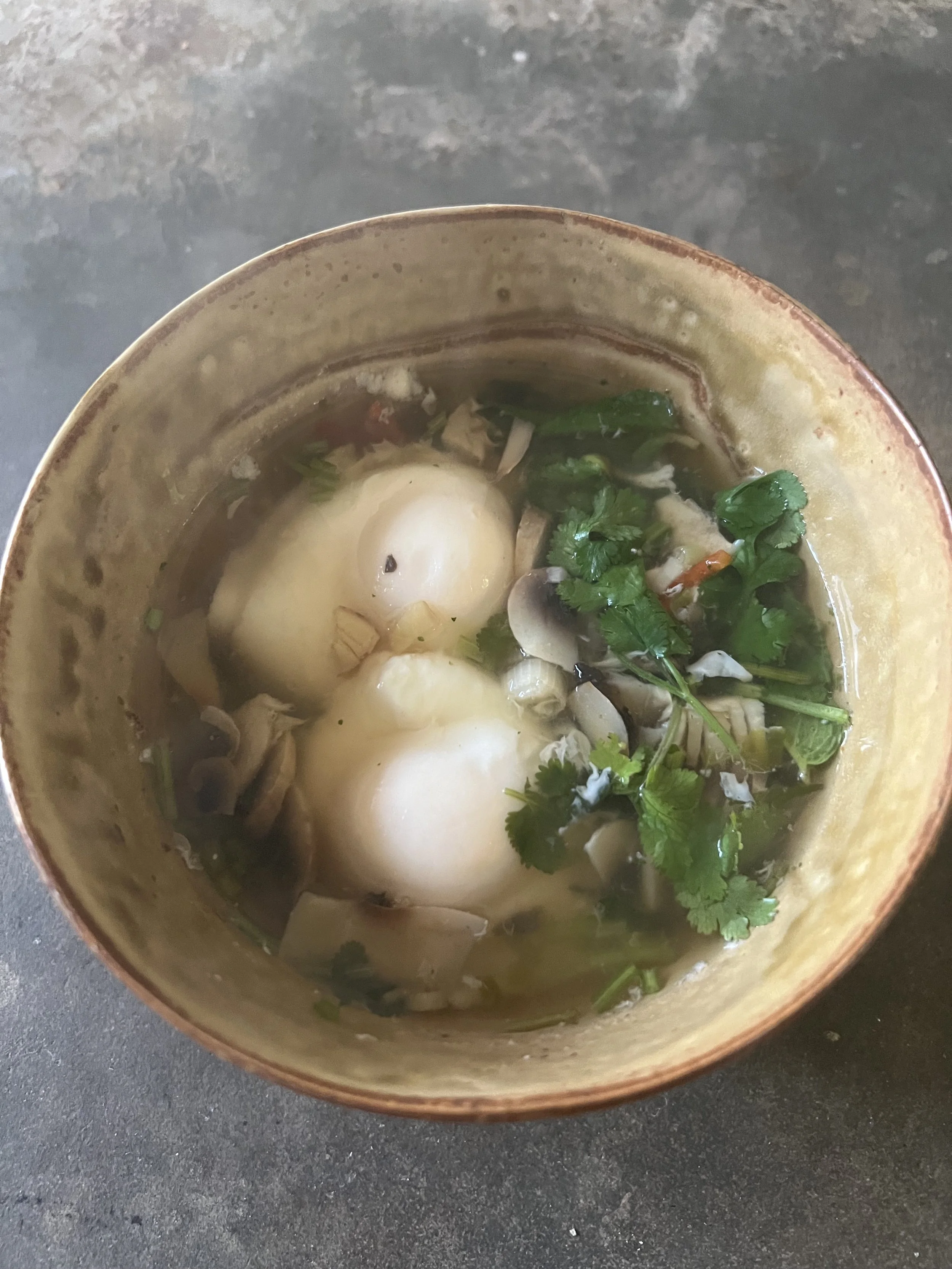 My newest and most delightful way of starting the day is like they do in Asia (also my favored kind of food style), namely with a bone broth soup with added minced meat from beef or lamb, and sometimes even with a couple of eggs poached in the soup. Of course, I add lots of fresh herbs like cilantro and mint. This keeps me full and energized for many hours and builds a stable and sustainable energy.